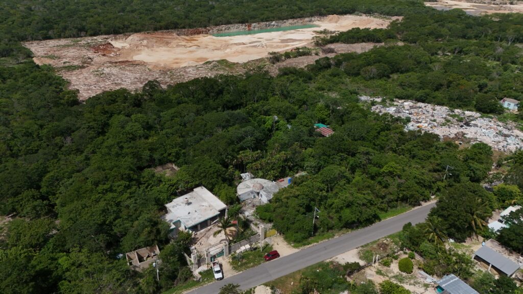 La explotación de bancos de materiales pétreos no es una actividad reciente en la península; sin embargo, la elevada demanda de insumos frente al incremento de megaproyectos en el estado, como el Tren Maya, detonó una expansión sin precedentes en la actividad minera. En este contexto, empresas mineras obtuvieron autorizaciones de las autoridades competentes de los tres niveles de gobierno para el cambio del uso de suelo, ya fuera con el fin de deforestar los sitios destinados a nuevos bancos de materiales o para realizar extracciones por debajo del nivel freático. Estas prácticas han provocado la destrucción irreversible del suelo kárstico, afectando directamente la integridad del sistema acuífero y poniendo en riesgo la estabilidad ecológica de un territorio especialmente frágil en el norte de la península.